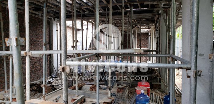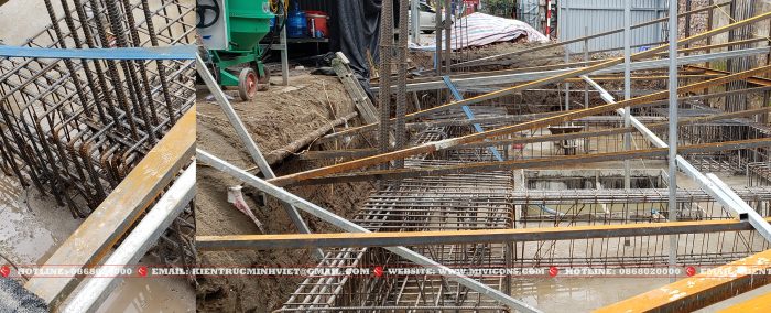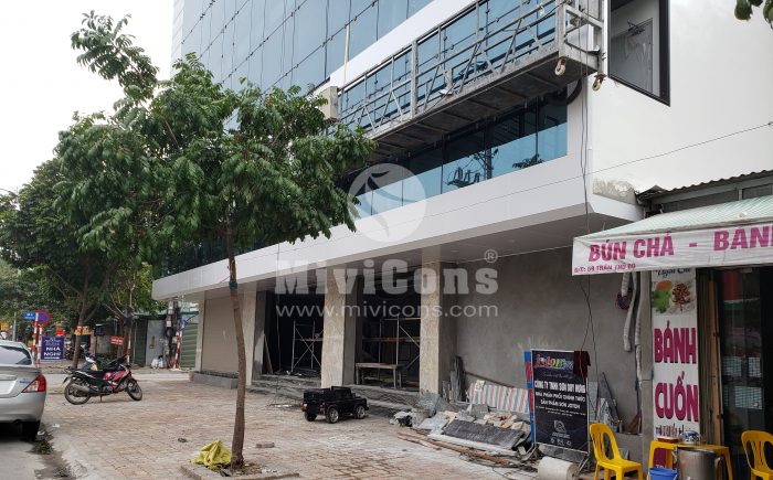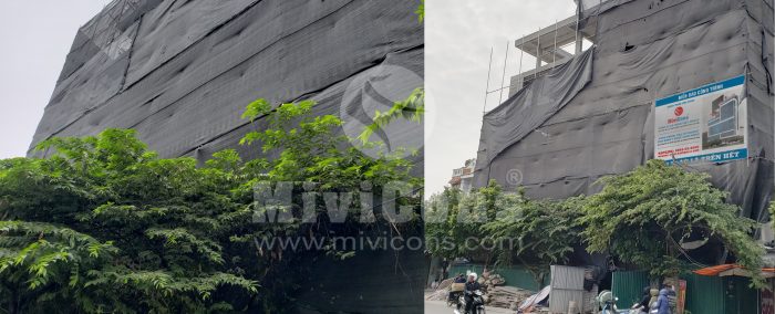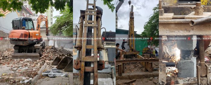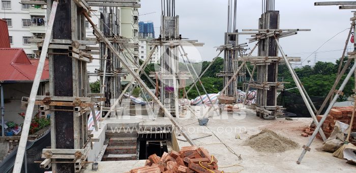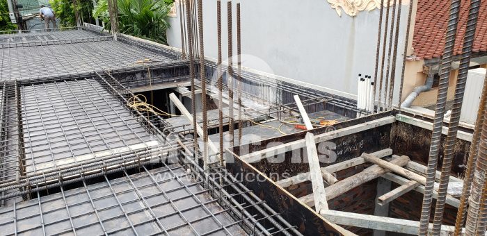 Công tác phá dỡ công trình cũ và tiến hành ép cọc. Nối cọc được định vị chuẩn tâm, nối cọc bằng 4 bản mã được hàn chắc chắn.Sau khi ép cọc, Mivicons làm công tác dựng lán trại cho ae công nhân ở trong quá trình làm móng và kho chứa vật tư phục vụ công trình. Sử dụng 100% thép hộp mạ kẽm.Đổ lót và làm thép móng, song song với đó là công tác neo chống công trình lân cận bằng thép hình u, i, c.Tiến hành xây tường các hệ thống ngầm sau khi đã hoàn thành móng, Quý khách hàng có thể nhìn thấy công đoạn xây tường gạch ngay từ phần móng của Mivicons rất chỉn chu qua hình ảnh thực tế này.Toàn bộ hệ giằng, cột chống của công trình được sử dụng chất liệu thép mạ kẽm. 100% công trình Mivicons đã và đang thi công không sử dụng các loại cột chống bằng tre hoặc cột chống gỗ tạp bán tràn lan trên thị trường, chất lượng không đảm bảo.Hiện nay chỉ có ván phủ phim Plywood hoặc một số loại tương đương mới đảm bảo được chất lượng và thẩm mỹ của bê tông. Mivicons nói không với các loại ván tạp, ván gỗ xẻ… không đảm bảo được chất lượng bê tông, hay xảy ra hiện tượng co ngót trong môi trường độ ẩm cao dẫn đến làm biến dạng bề mặt bê tông.Công đoạn làm thép sàn, dầm và các cấu kiện phụ trợ.Công xôn và thang bộ…Hoàn thiện thép sàn, cột chuẩn bị cho công tác đổ bê tông.Lắp dựng ván phủ phim, gông cột, đổ bê tông cột…Tháo dỡ ván khuôn và đi các hệ thống kỹ thuật cần thiết sát trần bê tông…Toàn bộ quá trình thi công Mivicons đều bọc lưới gai và hệ giáo an toàn để: an toàn lao động, ngăn vật tư rơi vãi xuống làm nguy hiểm cho giao thông xung quanh, tránh bụi đảm bảo vệ sinh môi trường và phục vụ công tác trát ngoài và những cấu kiện liên quan…Hình ảnh treo ti thép mạ kẽm đỡ hệ ống của điều hòa không khí theo sơ đồ…Toàn cảnh công trình nhìn từ bên ngoài, toàn bộ công trình được bọc lưới đảm bảo an toàn, tránh bụi, vật rơi tuân thủ quy định an toàn lao động…Lắp dựng vách kính mặt tiền, aluminum bọc, cách hạng mục theo thiết kế…Toàn cảnh công trình trong quá trình hoàn thiện mặt tiền…